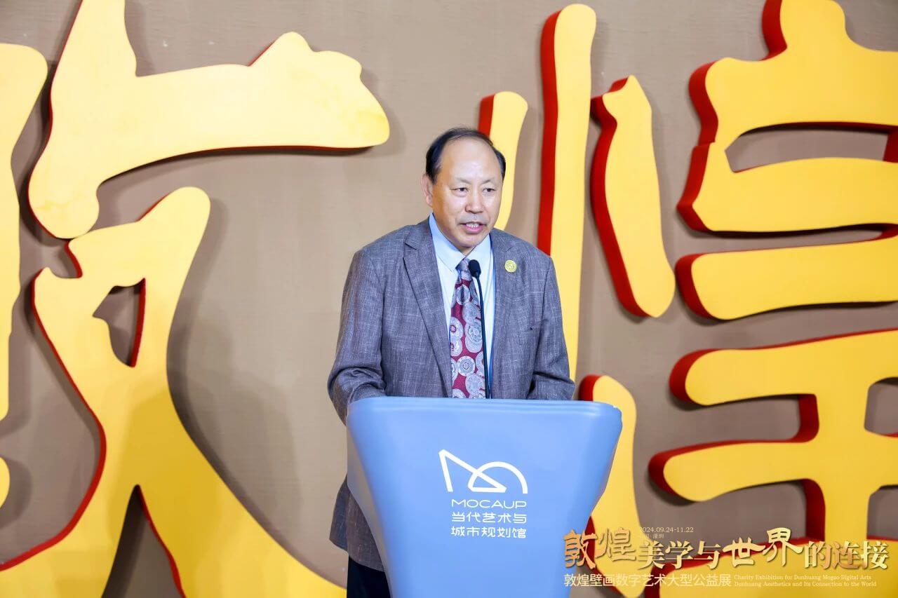 中国敦煌石窟保护研究基金会理事长杨秀清致辞中表示,期待通过本次展览,让更多的人走近敦煌,领略敦煌文化艺术的博大精深,感悟人类文明交流互鉴的气魄,让文明的光芒在新时代传承交融中熠熠生辉。